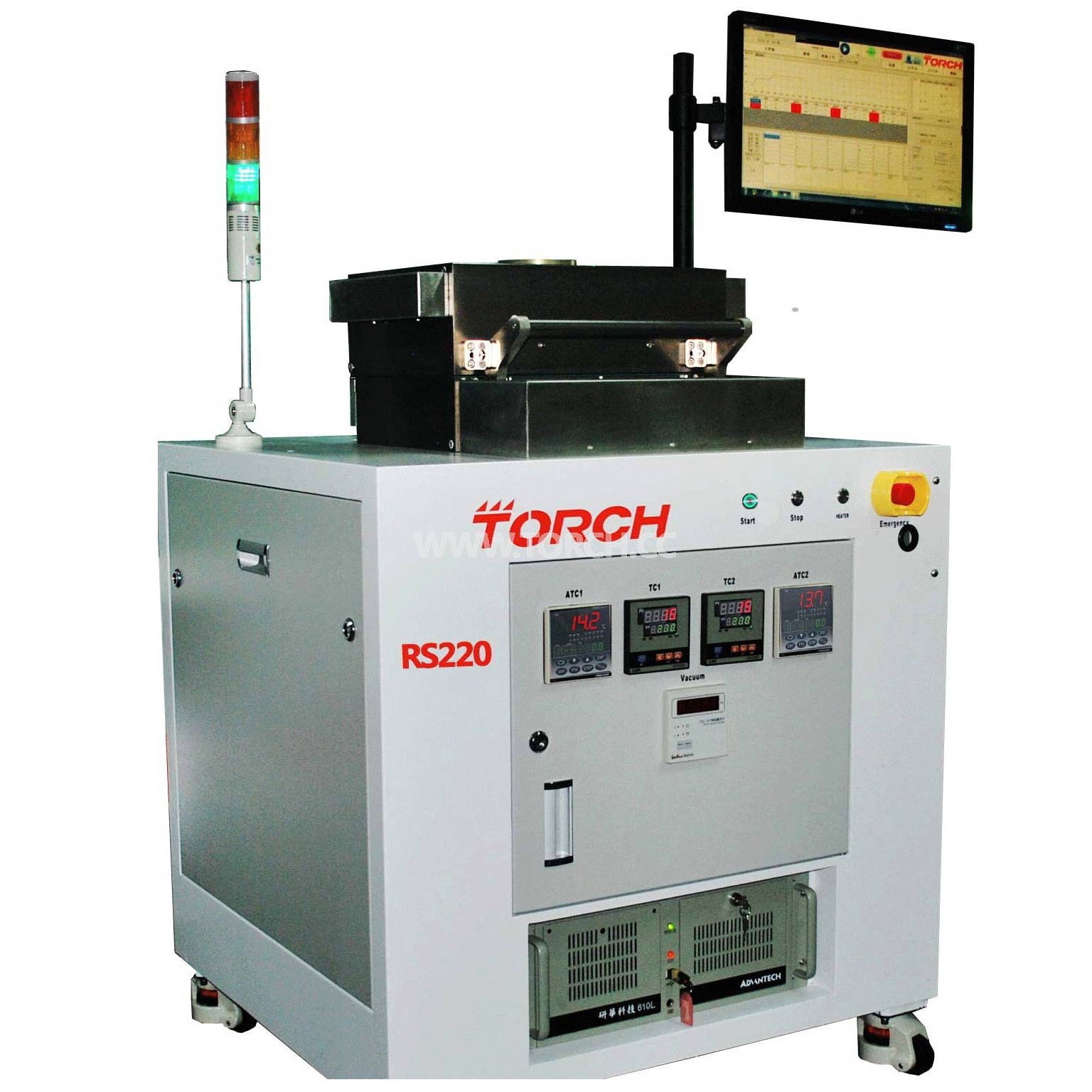 真空共晶爐在真空環(huán)境下加熱,來實現(xiàn)無空洞焊點,能夠滿足研發(fā)部門對測試及小批量生產的要求;能夠達到被焊接器件焊接區(qū)域空洞范圍減小到 2%;可應用無熔劑焊接,無空洞焊點,可使用不同氣體(N2,N2/H2 95%/5%)等各種氣氛的應用;可使用無鉛的焊膏或焊片的工藝,也可使用無助焊劑工藝;其軟件控制系統(tǒng)操作簡單,能直接控制設備及設定各種焊接工藝曲線,并根據工藝不同進行修改創(chuàng)建。